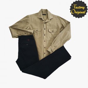 Conjunto de chino elástico negro camisa modelo doble bolsillo beis SYC Factory Original
