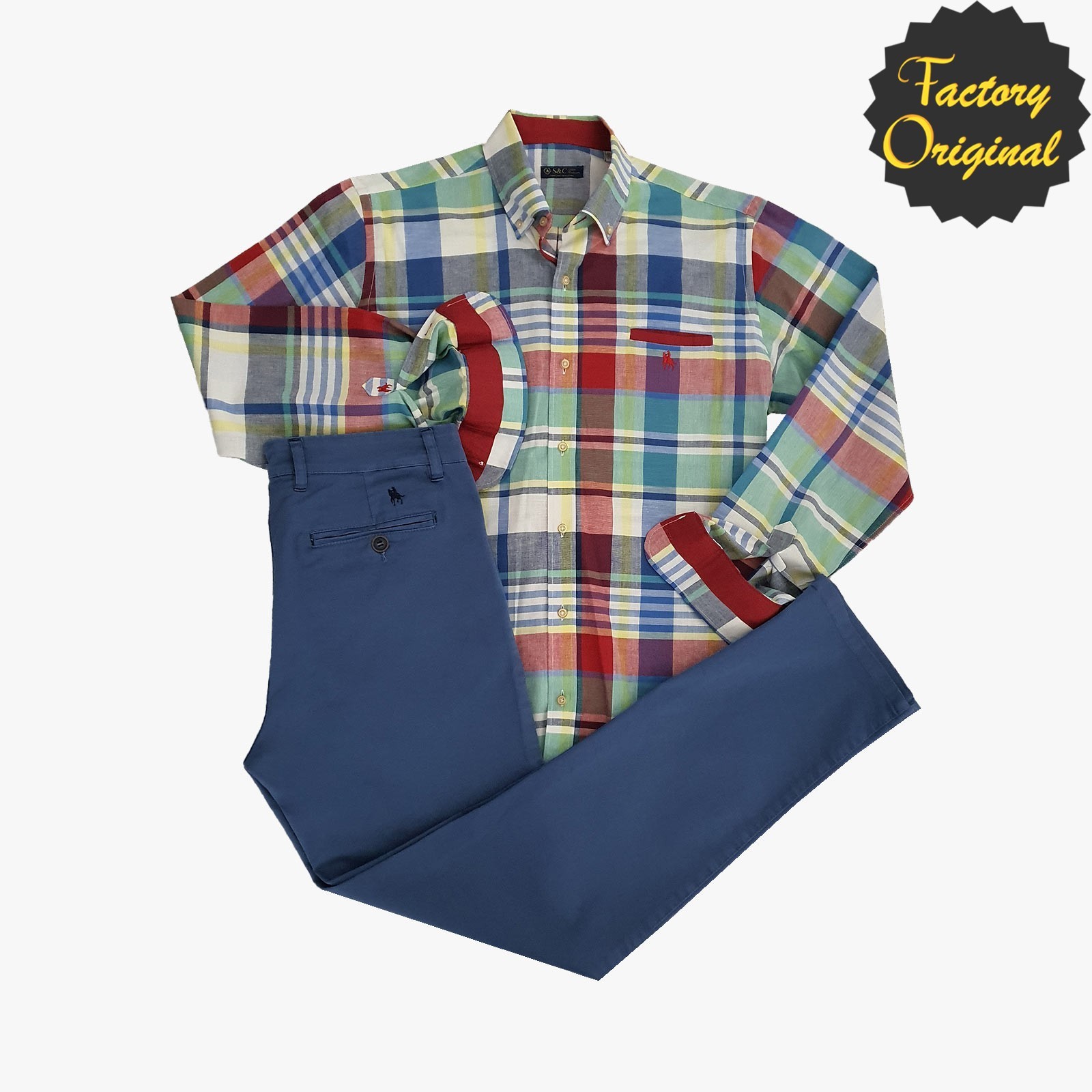 Conjunto chino elastico azul camisa hombre cuadros multicolor Syc Factory Original