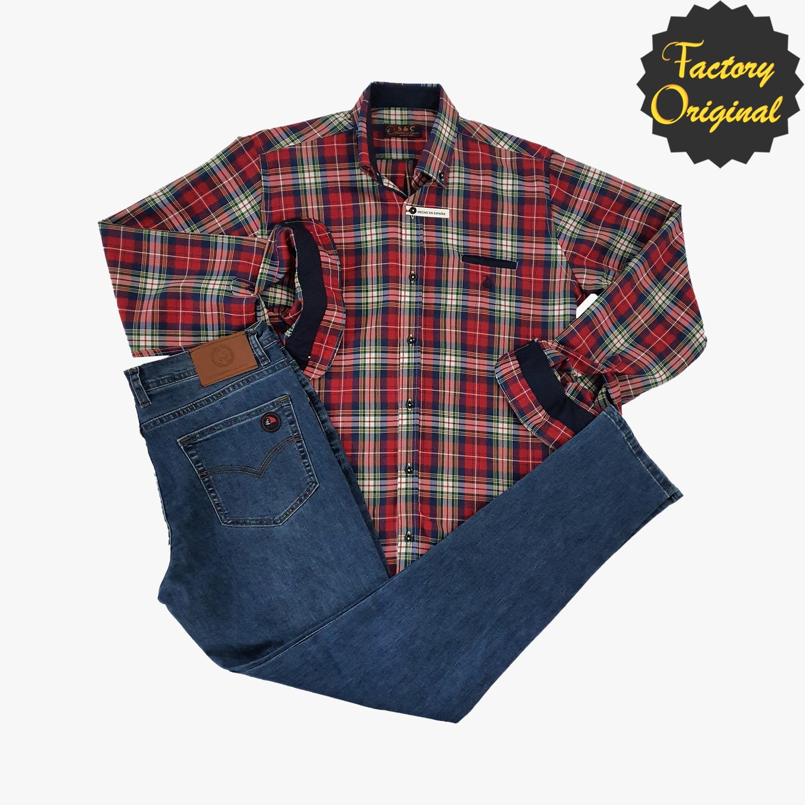 Conjunto vaquero ibiza oscuro camisa modelo faisan rojo SYC Factory Original