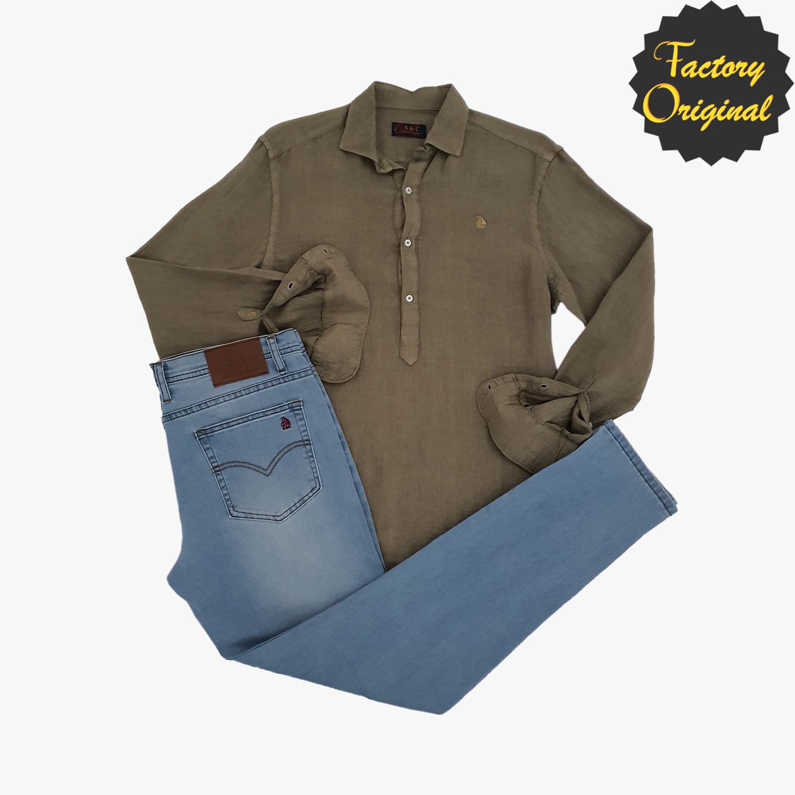 Conjunto pantalón barco Ibiza vaquero claro camisa barco lino modelo vértice corto kaki SYC Factory Original