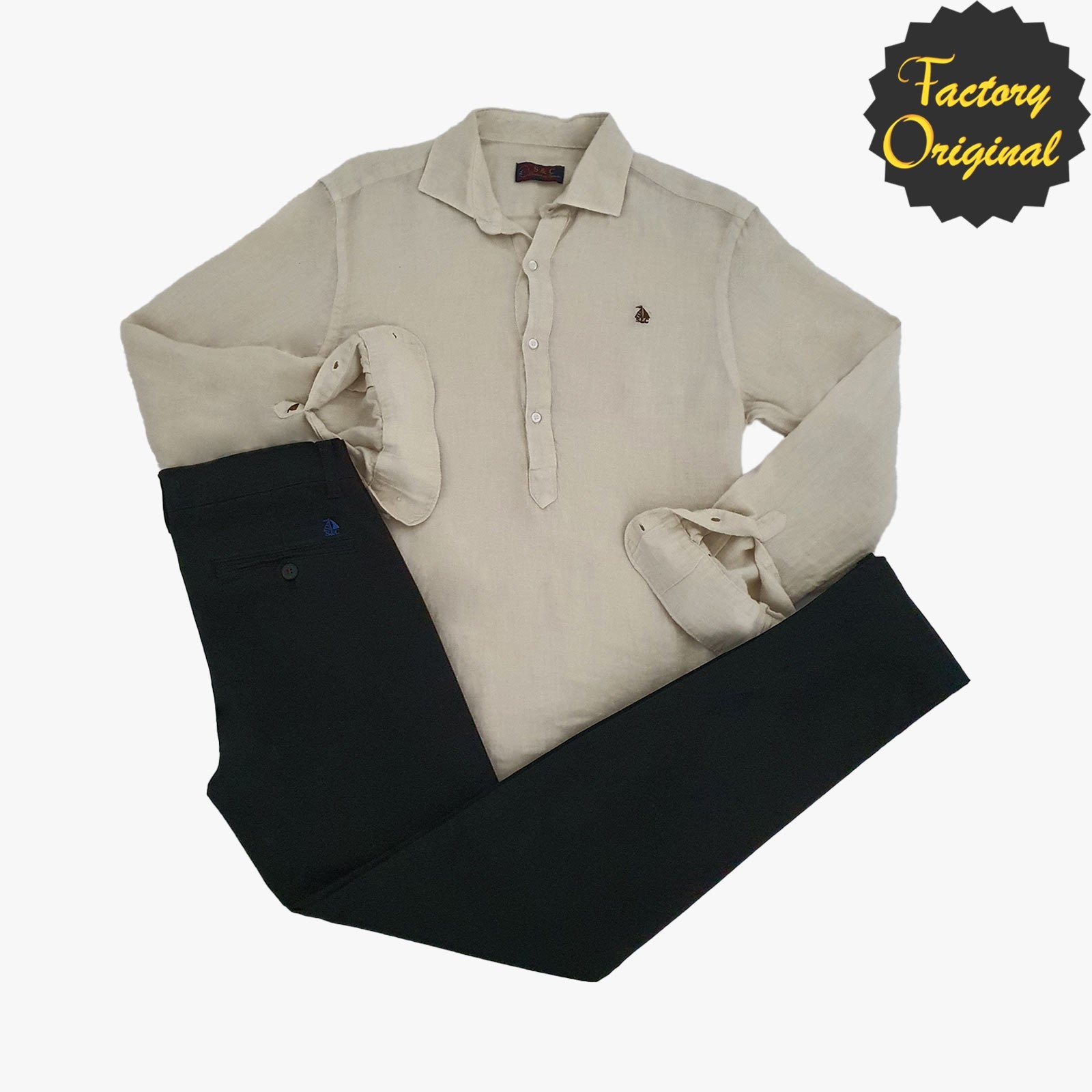 Conjunto pantalón chino barco negro camisa barco lino modelo vértice corto beige arena SYC Factory Original