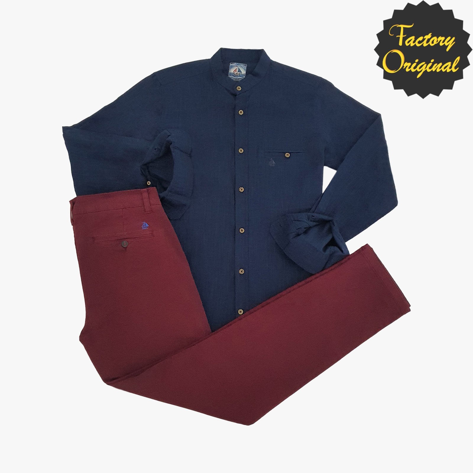 Conjunto pantalón chino barco granate camisa barco tipo lino modelo serenidad azul oscuro cuello mao SYC Factory Original