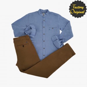 Conjunto pantalón chino barco camel camisa barco tipo lino modelo serenidad celeste cuello mao SYC Factory Original
