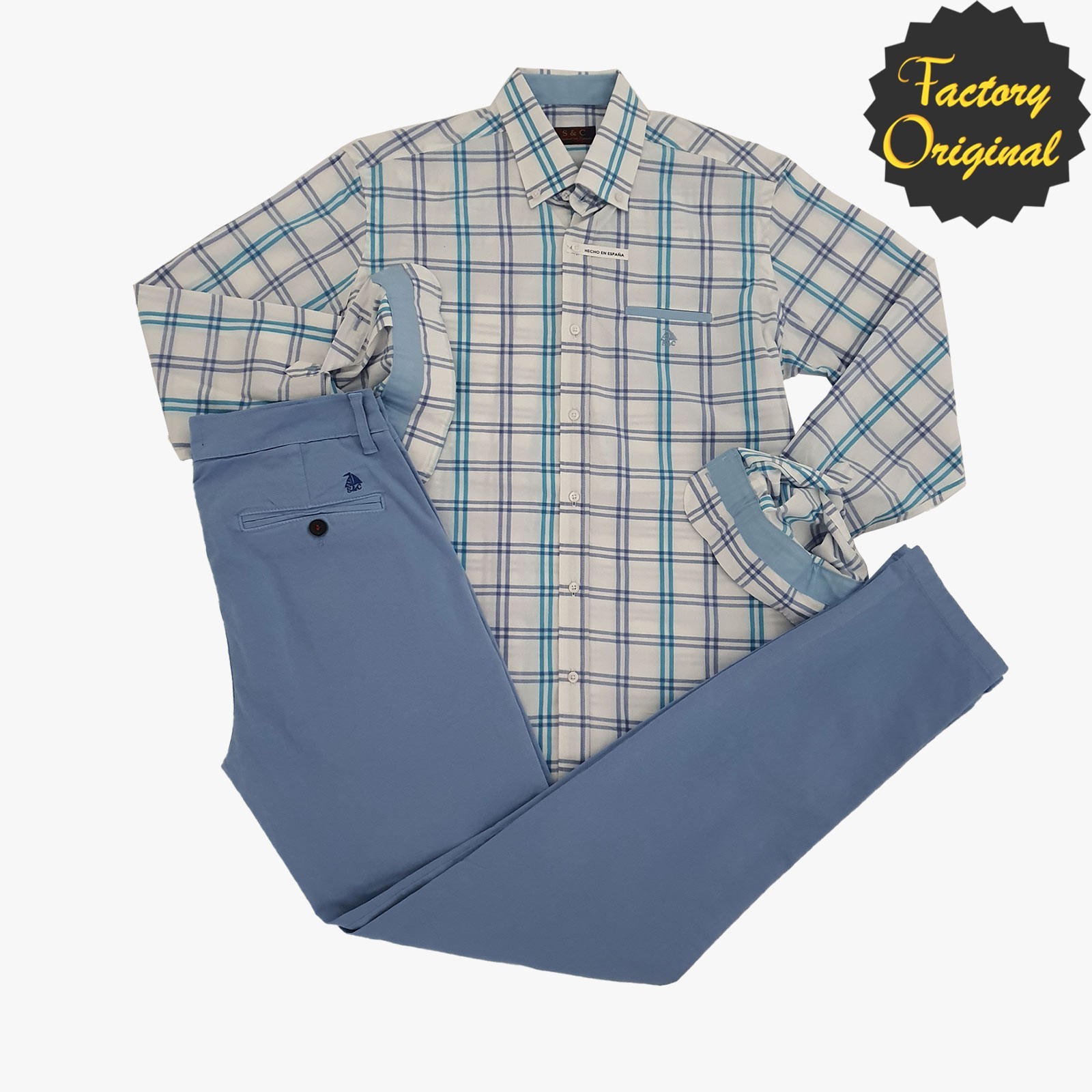 Conjunto pantalón chino barco celeste camisa barco modelo cambridge azul SYC Factory Original