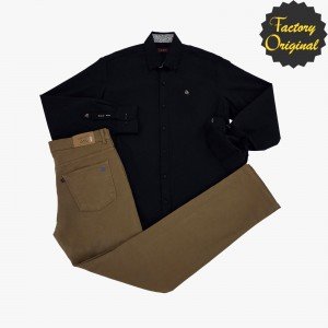 Conjunto pantalón 5 bolsillos barco beis tostado camisa barco modelo imperial negro SYC Factory Original