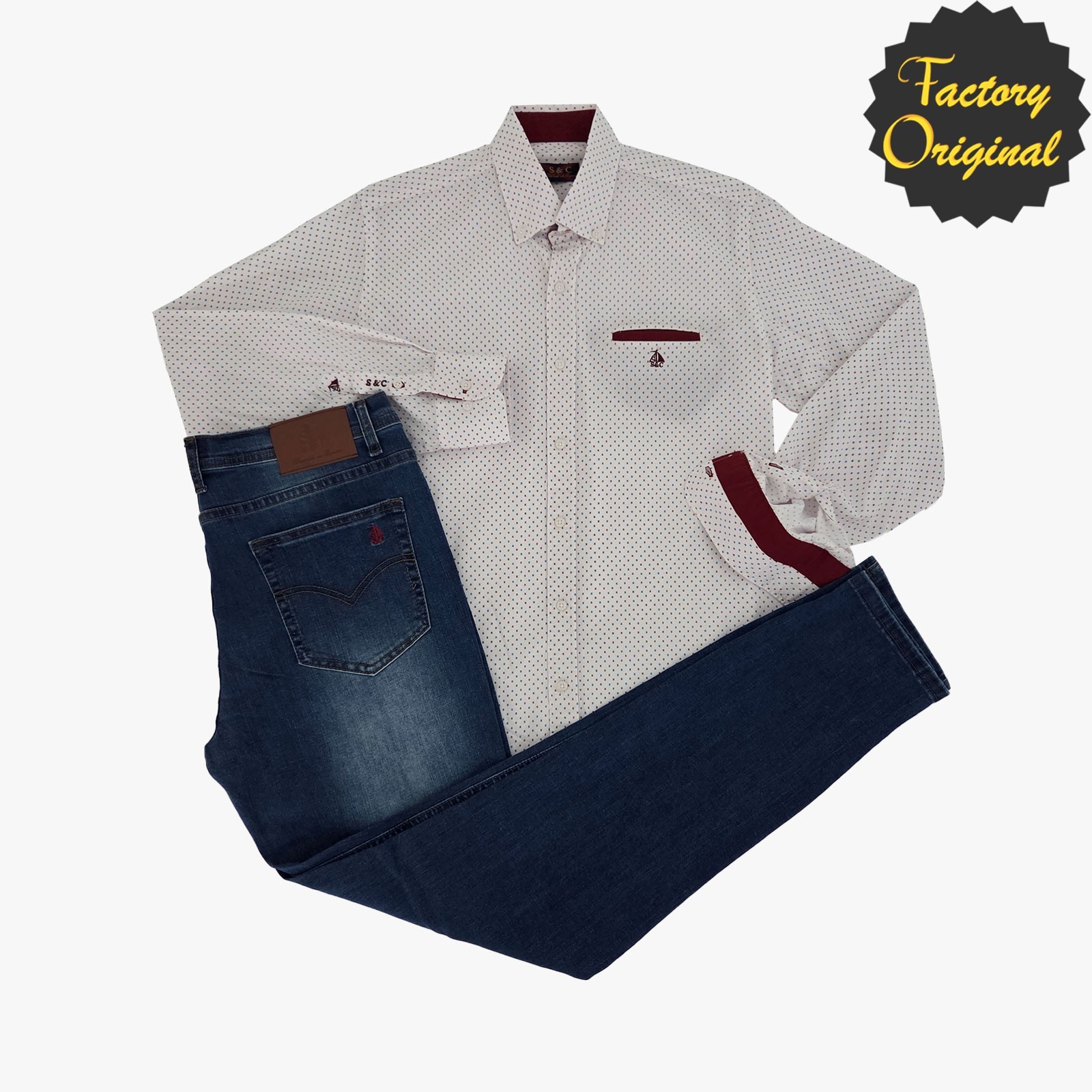 Conjunto pantalón barco ibiza vaquero oscuro camisa barco modelo vanguardia granate SYC Factory Original