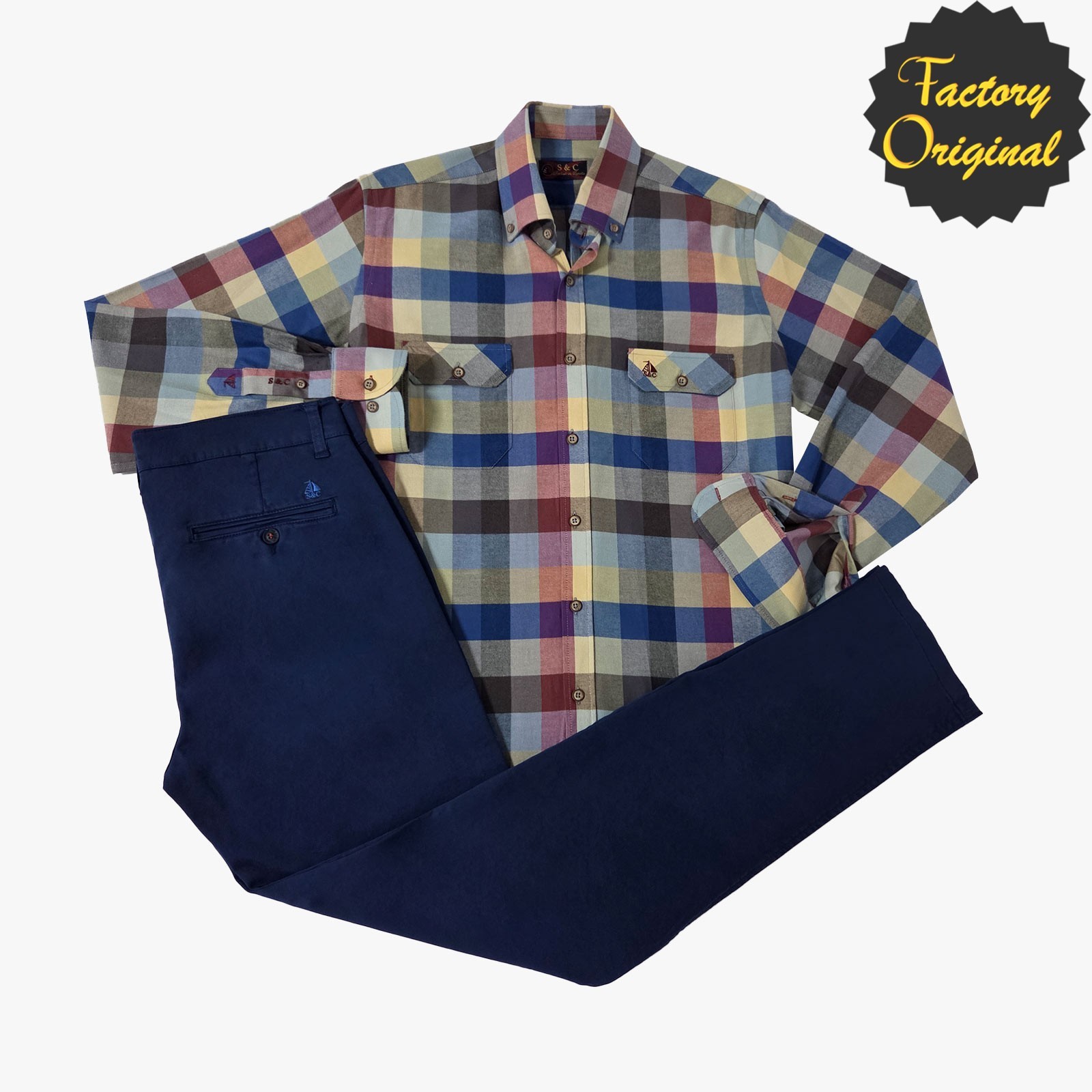 Conjunto pantalón chino barco azul royal camisa barco modelo viella cuadro bristol SYC Factory Original