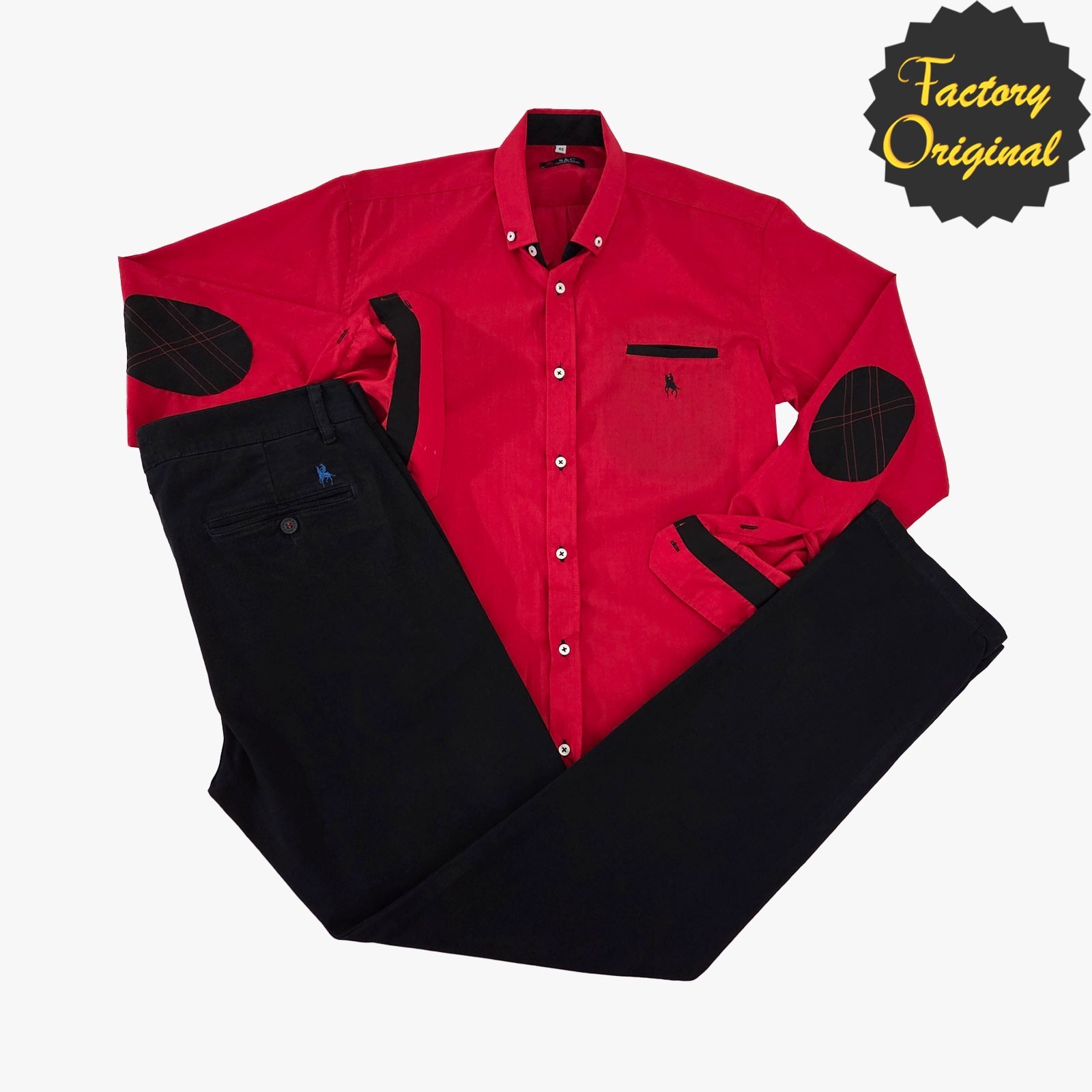 Conjunto pantalón chino micropunto negro camisa roja codera negra SYC Factory Original