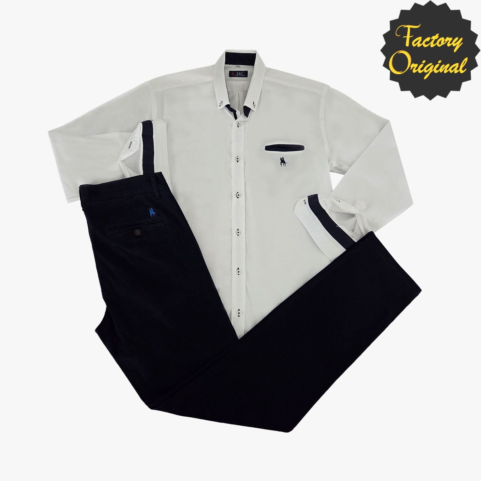Conjunto pantalón chino negro camisa best seller blanco y marino SYC Factory Original