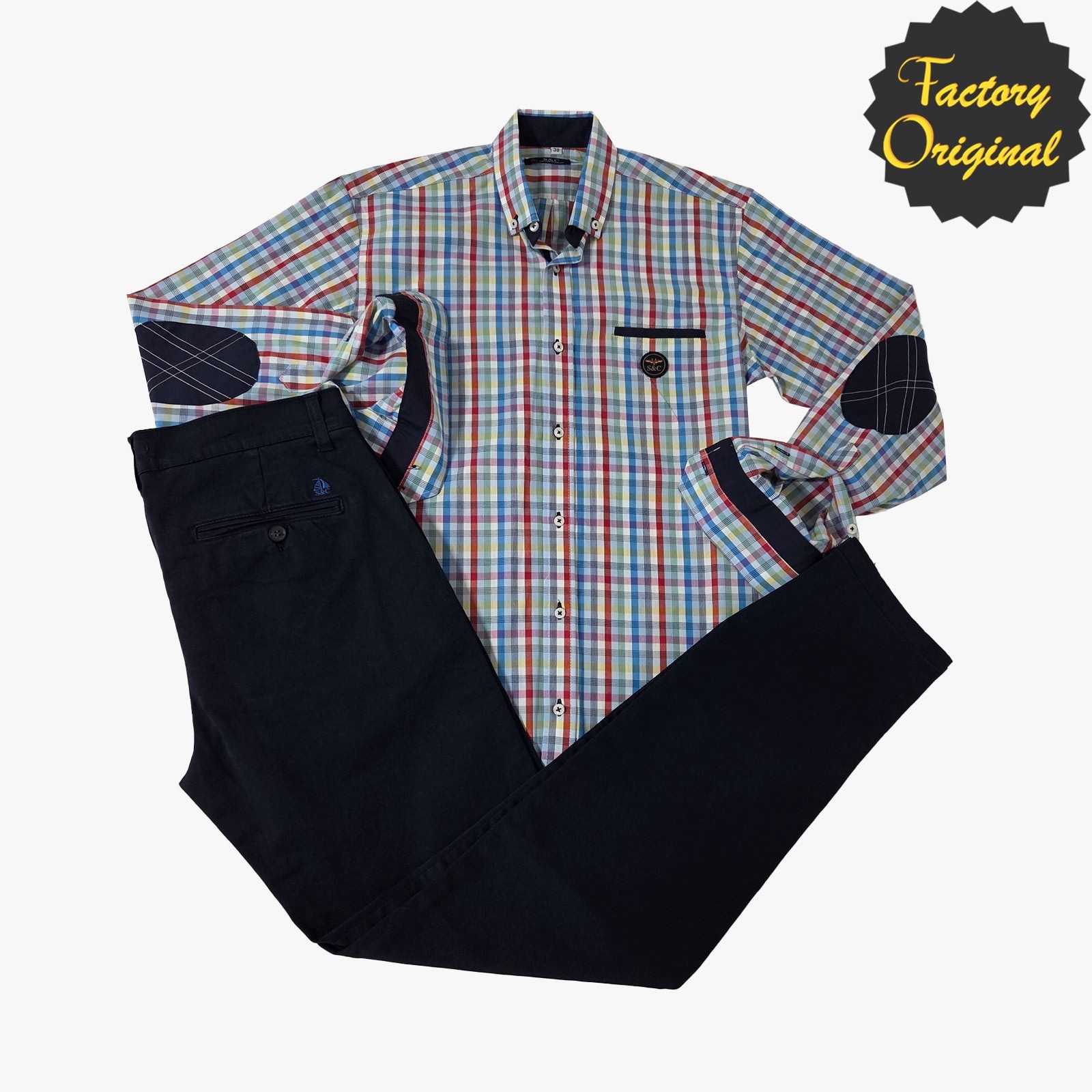Conjunto pantalón chino barco bolsillo clásico marino camisa cuadro multicolor SYC Factory Original
