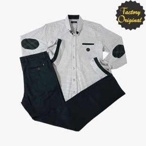 Conjunto pantalón chino barco bolsillo clásico verde oscuro camisa cuadro geométrico SYC Factory Original