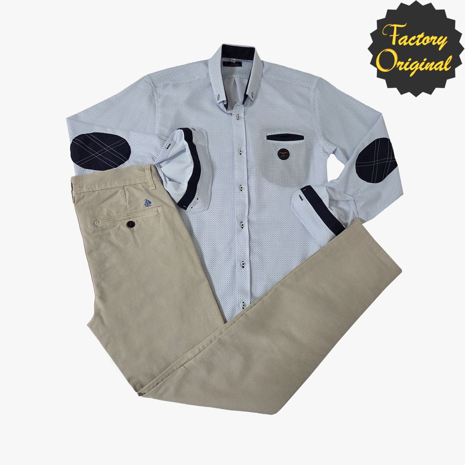 Conjunto pantalón chino barco beis claro camisa puntilleo marino SYC Factory Original