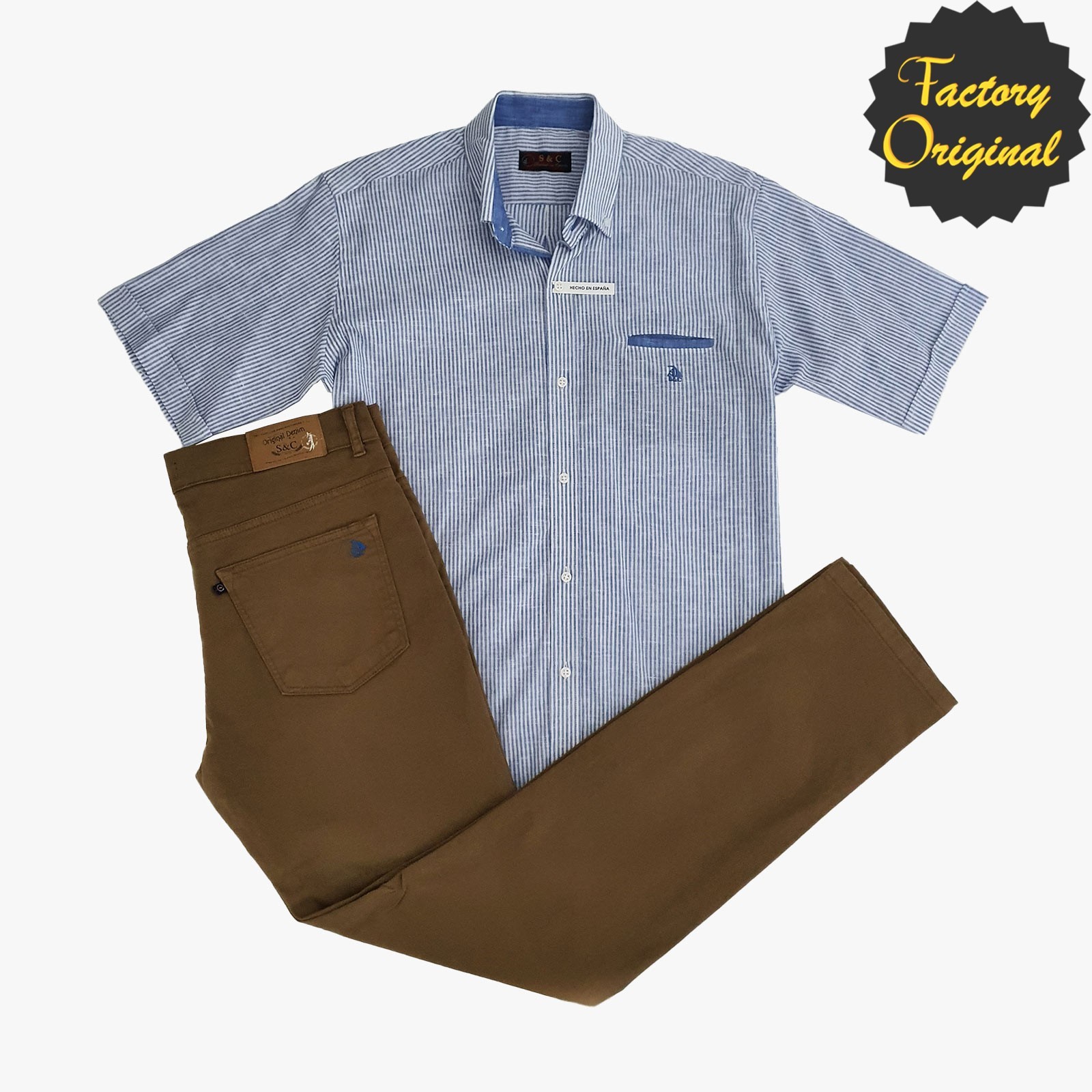 Conjunto de pantalon 5 bolsillos barco camel camisa manga corta modelo universitario azulón SYC Factory Original