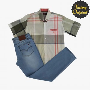 Conjunto de pantalon barco ibiza claro camisa manga corta modelo cuadro ancho bicolor SYC Factory Original