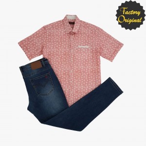 Conjunto de pantalón largo barco ibiza vaquero medio camisa hombre barco manga corta modelo flowers rosa SYC Factory Original