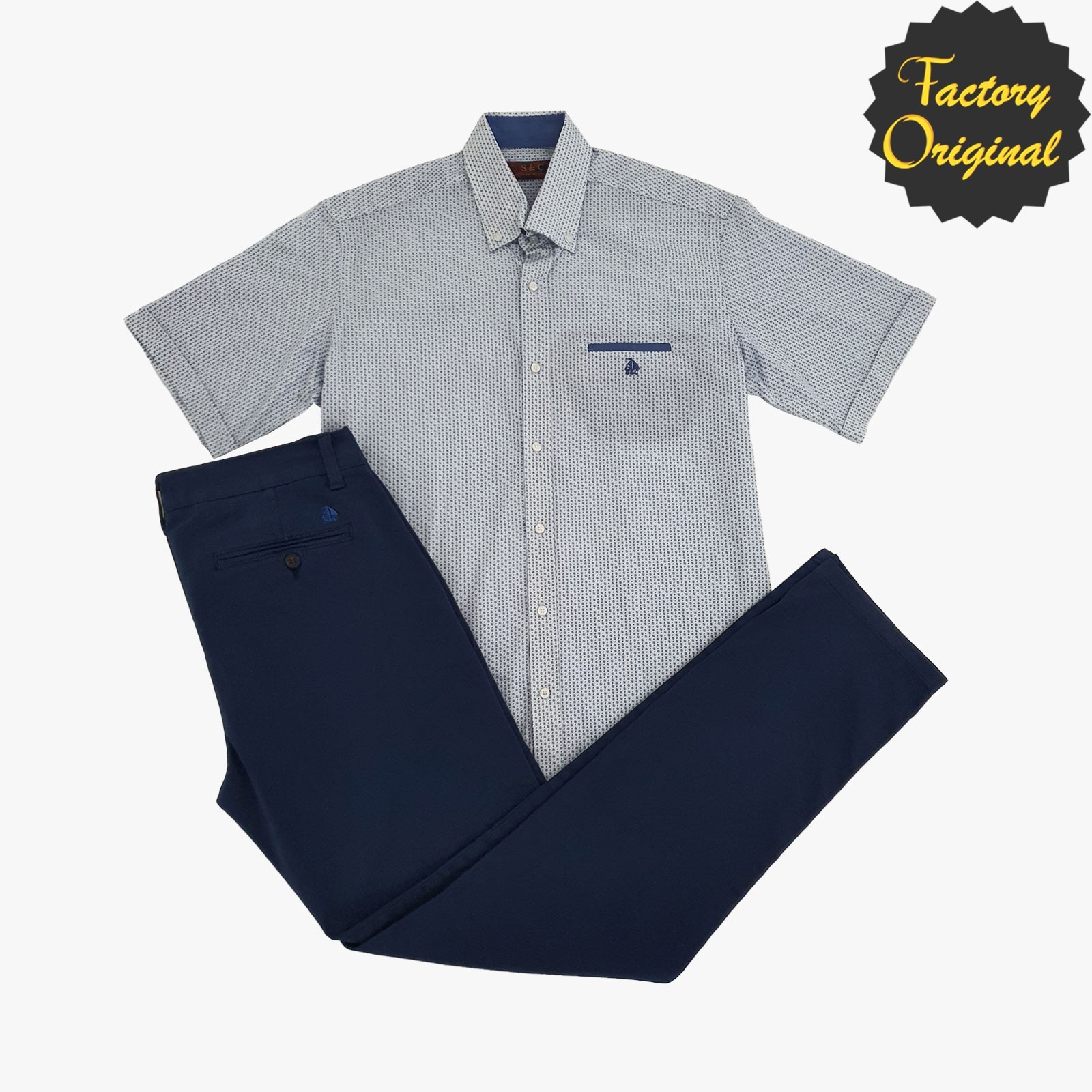 Conjunto de pantalón largo chino barco azul royal camisa hombre barco manga corta modelo beltrán azulón SYC Factory Original