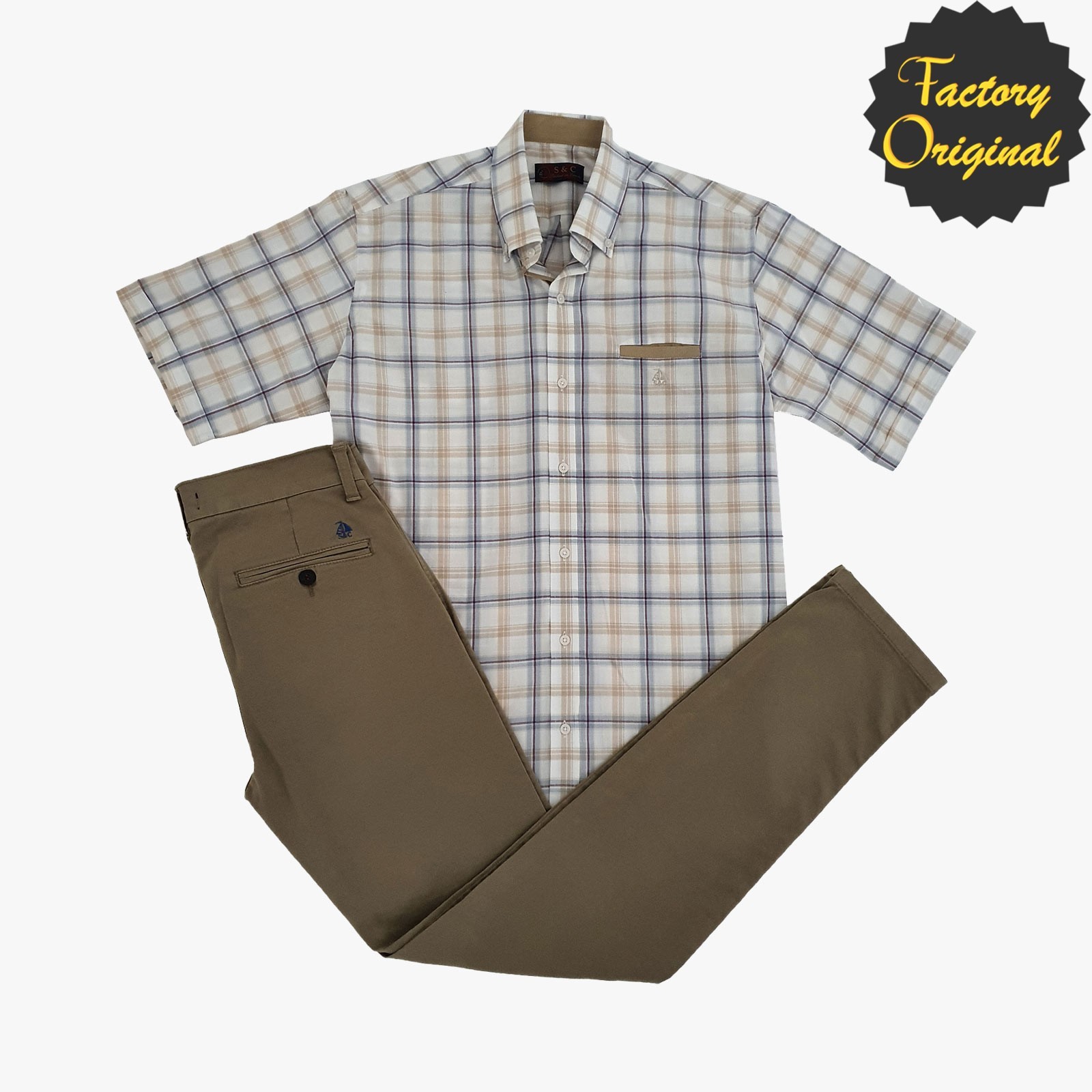Conjunto pantalón largo chino barco beis tostado camisa barco manga corta modelo elemental amarillo SYC Factory Original