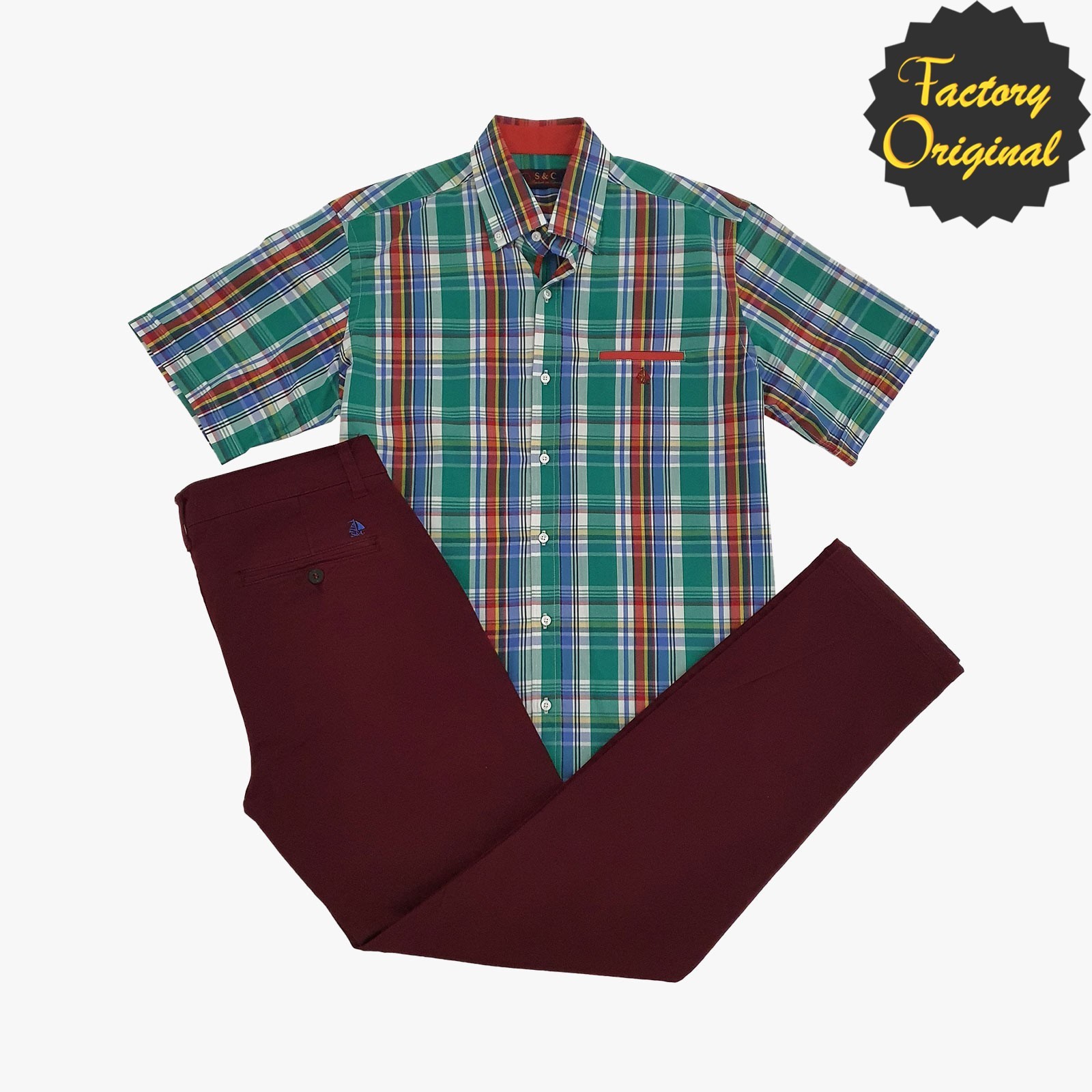 Conjunto pantalón largo chino barco granate camisa manga corta modelo escocia verde musgo SYC Factory Original