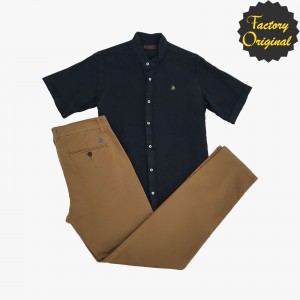 Conjunto pantalón largo chino barco camel camisa manga corta lino modelo vértice marino cuello mao SYC Factory Original