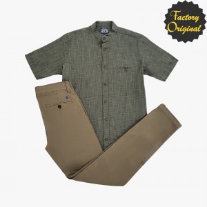 Conjunto chino barco beis tostado camisa manga corta tipo lino serenidad verde esmeralda cuello mao SYC Factory Original