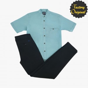 Conjunto pantalón chino barco negro camisa manga corta tipo lino modelo serenidad verde claro cuello mao SYC Factory Original