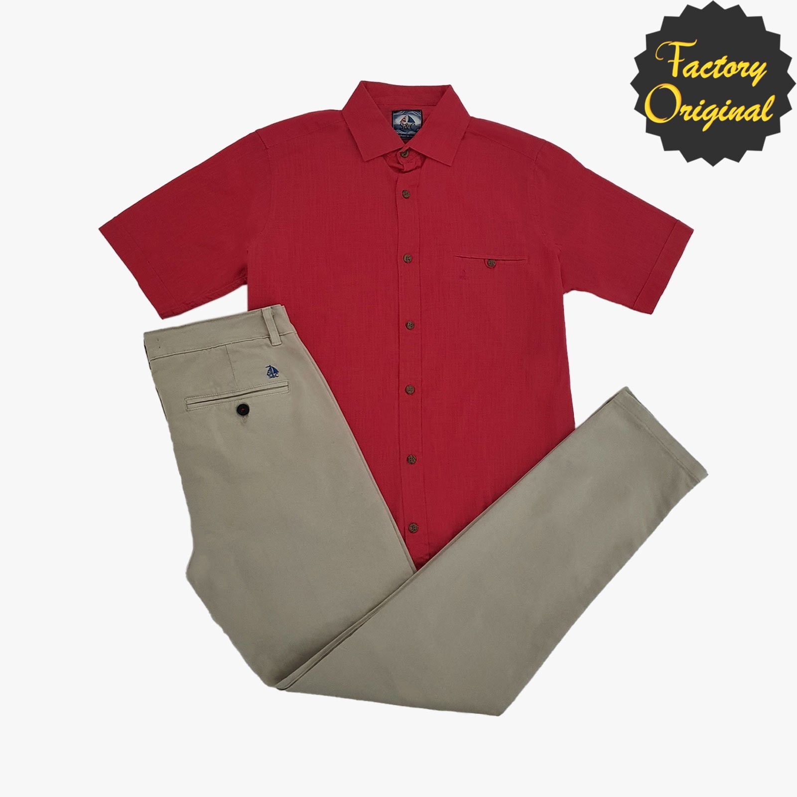 Conjunto pantalón chino barco beis claro camisa manga corta modelo serenidad rojo SYC Factory Original