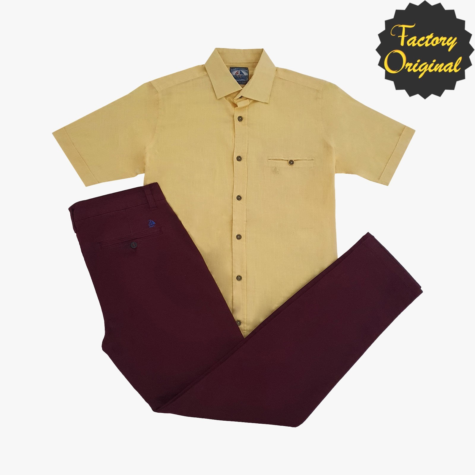 Conjunto pantalón chino barco granate camisa manga corta tipo lino modelo serenidad amarillo SYC Factory Original