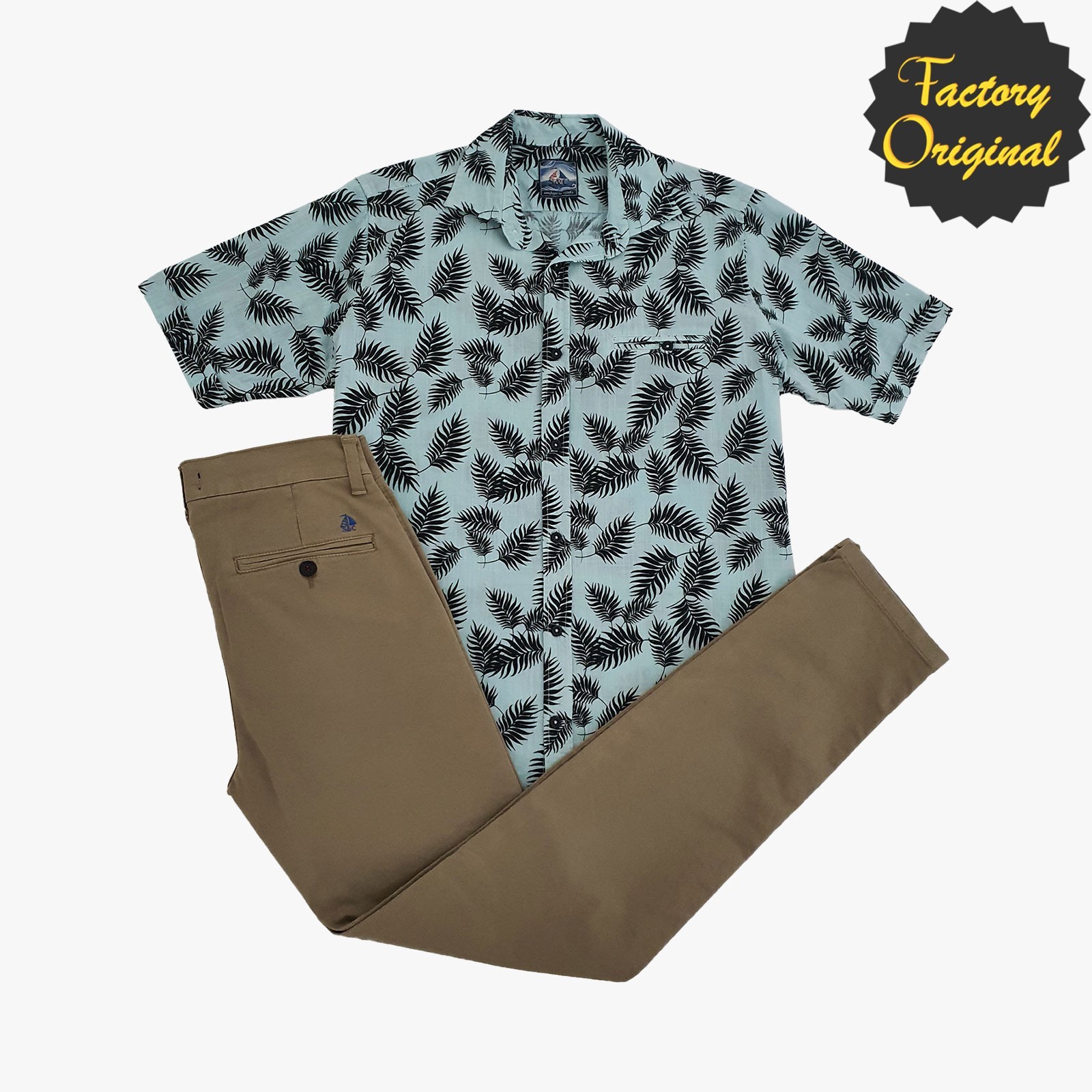 Conjunto pantalón largo chino barco camel camisa manga corta hojas verde SYC Factory Original