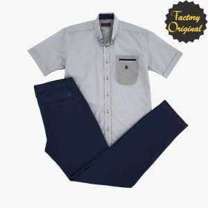Conjunto pantalón largo chino barco azul royal camisa manga corta modelo micropunto marino SYC Factory Original