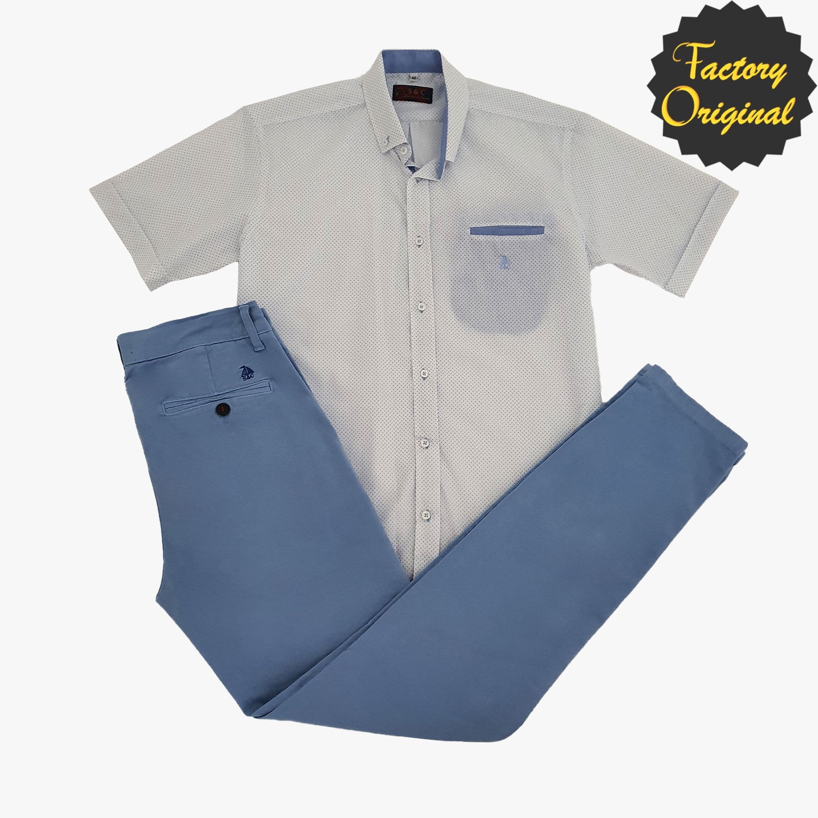 Conjunto pantalón largo chino barco celeste camisa manga corta modelo brisa azul SYC Factory Original