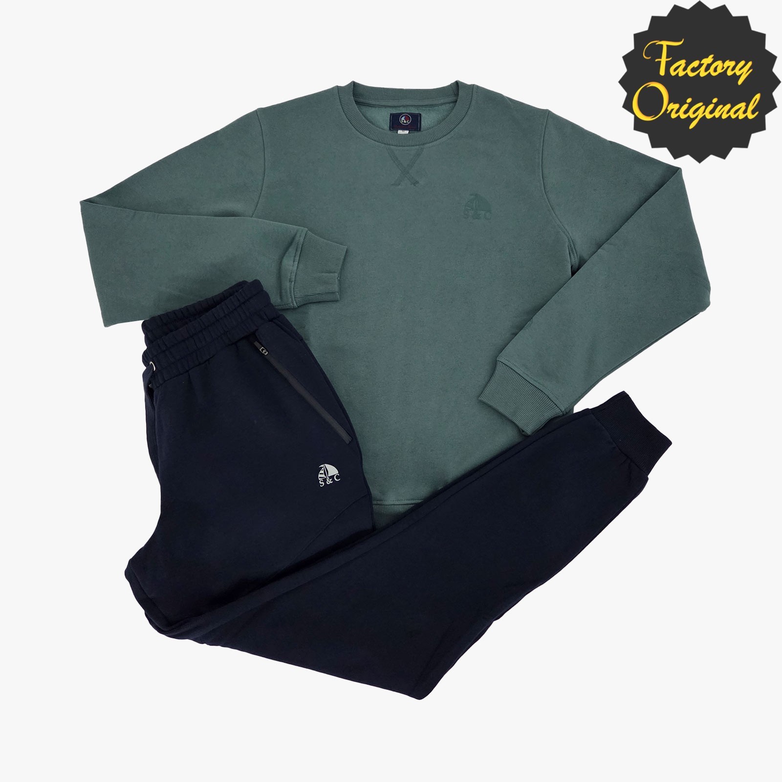 Conjunto chándal sudadera barco cuello redondo verde y pantalón barco fit marino SYC FACTORY ORIGINAL