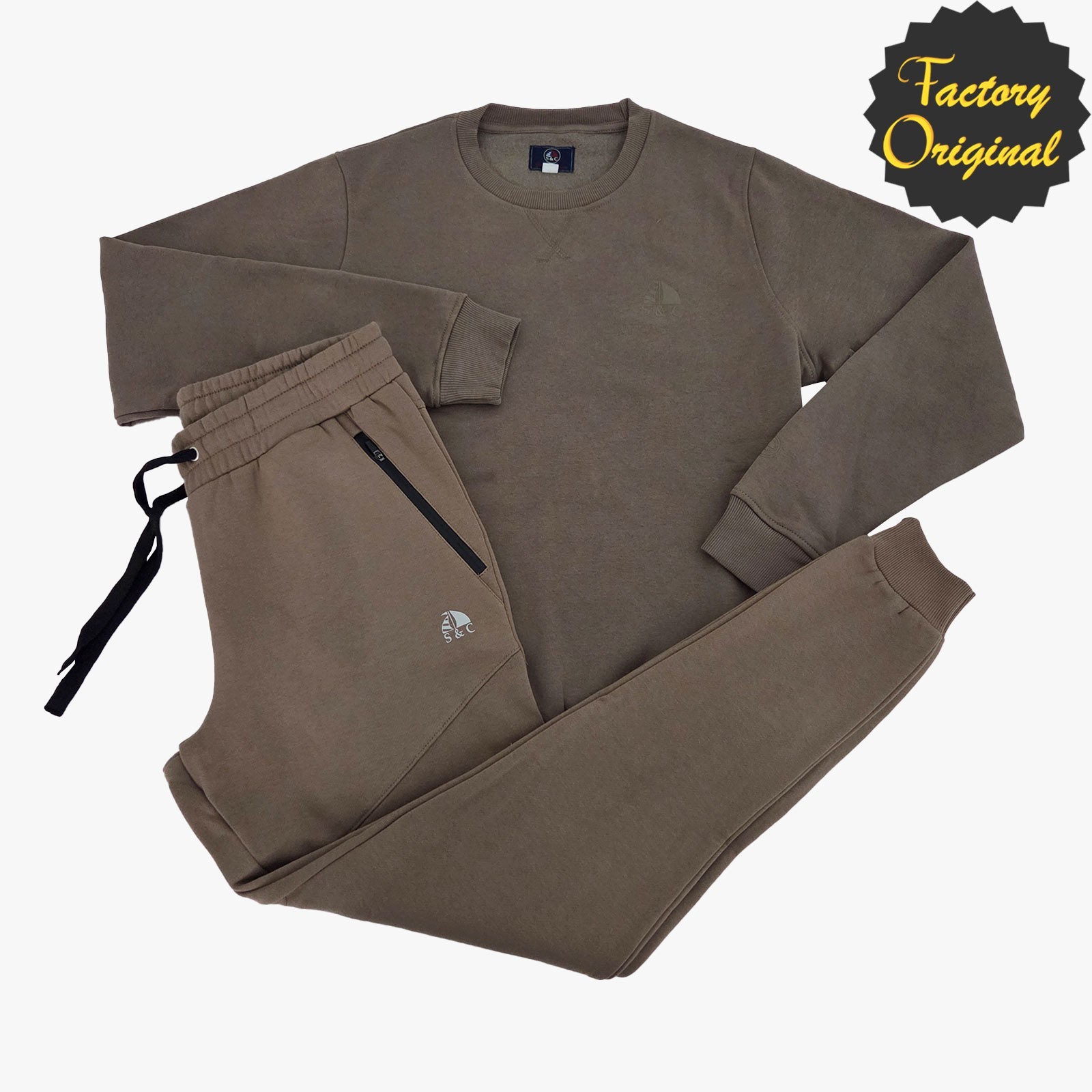 Conjunto chándal sudadera barco cuello redondo marrón y pantalón barco fit marrón SYC FACTORY ORIGINAL