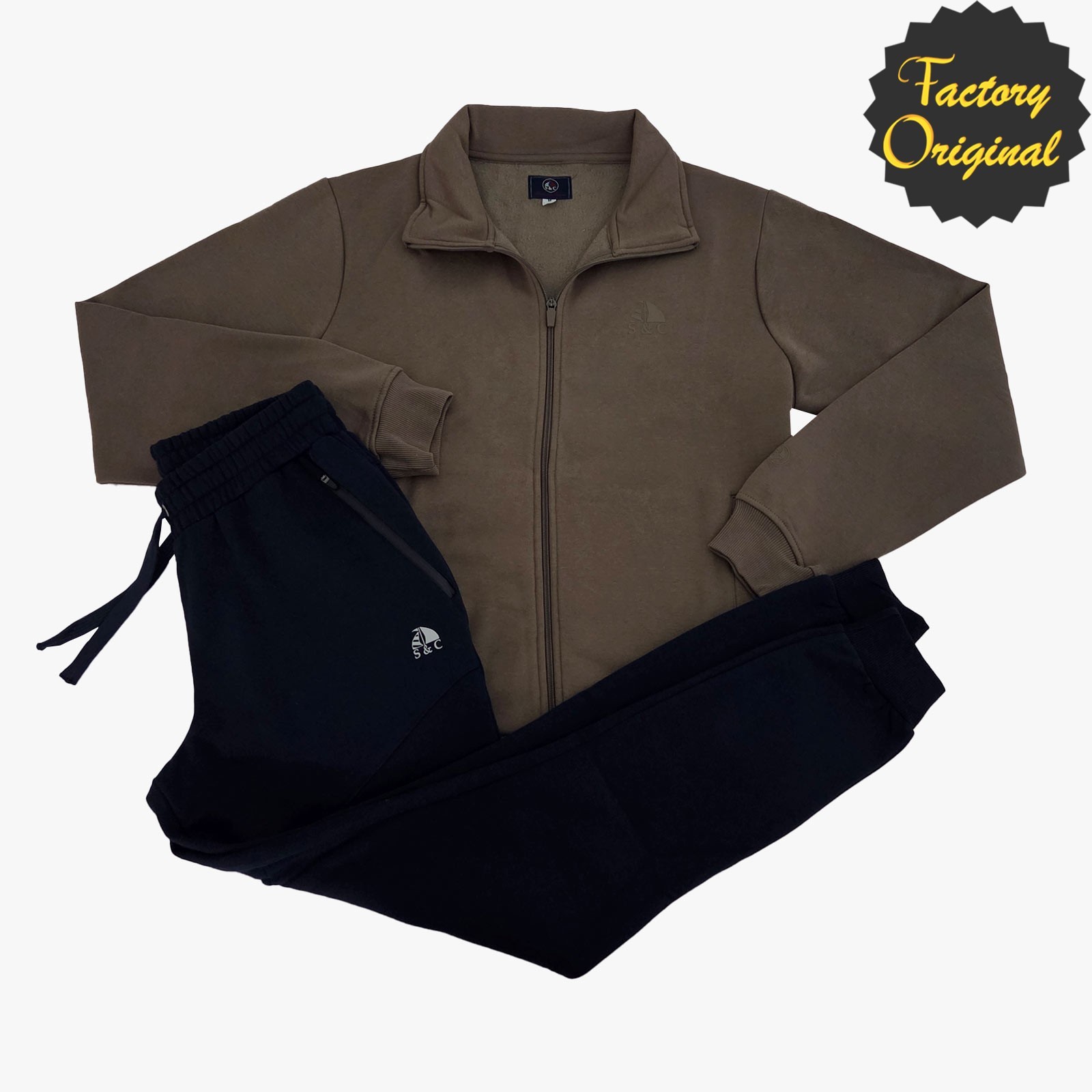Conjunto chándal sudadera barco cremallera marrón y pantalón barco fit negro SYC FACTORY ORIGINAL