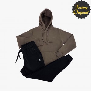 CONJUNTO SUDADERA LOGO BARCO CAPUCHA MARRÓN Y PANTALON DE CHANDAL FIT NEGRO SYC FACTORY ORIGINAL