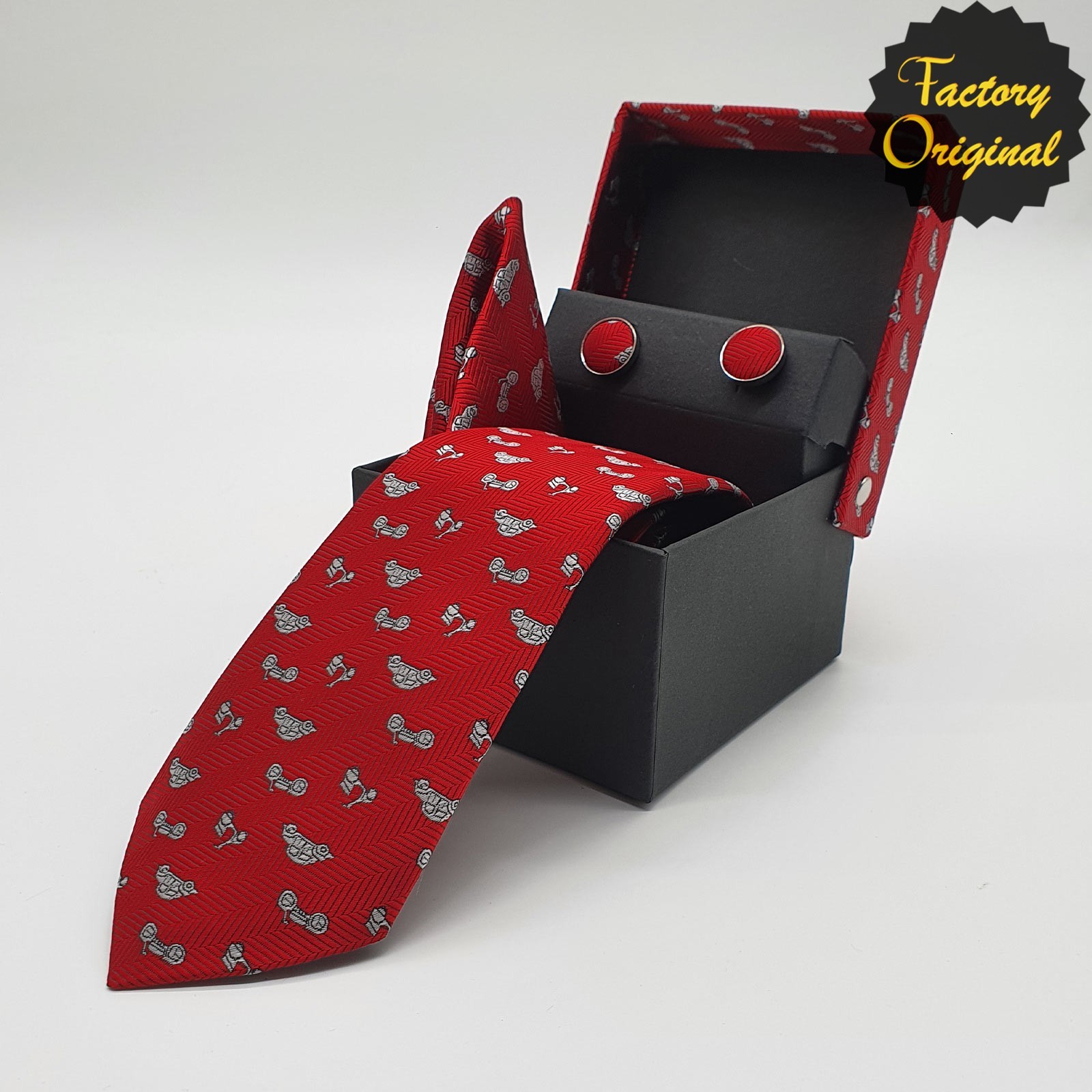 Pack Corbata, gemelos y pañuelo modelo motorizado rojo de SYC Factory Original