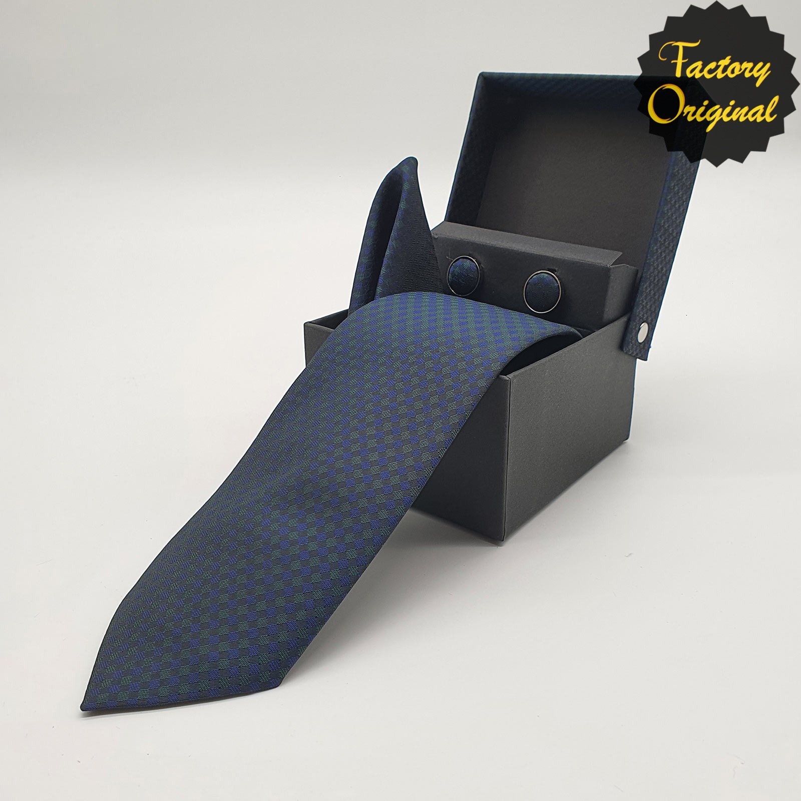 Pack Corbata, gemelos y pañuelo modelo cruzado marino de SYC Factory Original