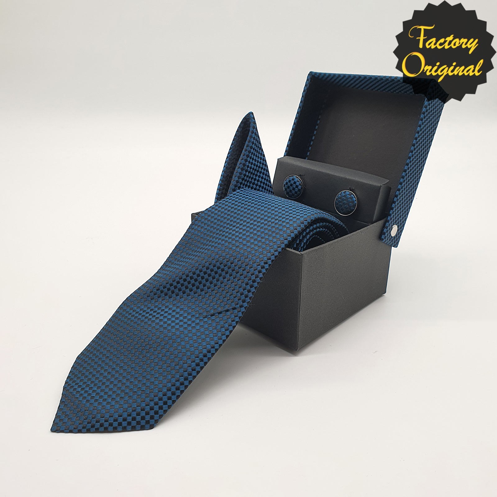 Pack Corbata, gemelos y pañuelo modelo cuadritos marino de SYC Factory Original