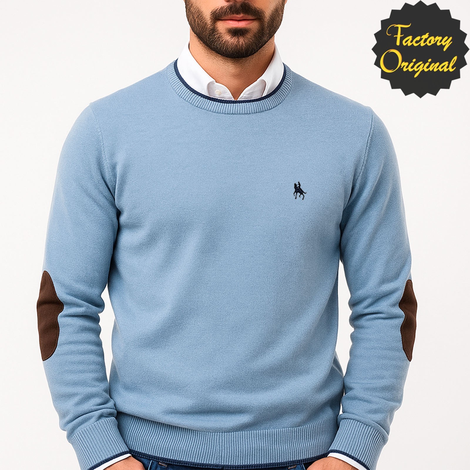 JERSEY CUELLO REDONDO CON CODERAS CELESTE SYC FACTORY ORIGINAL