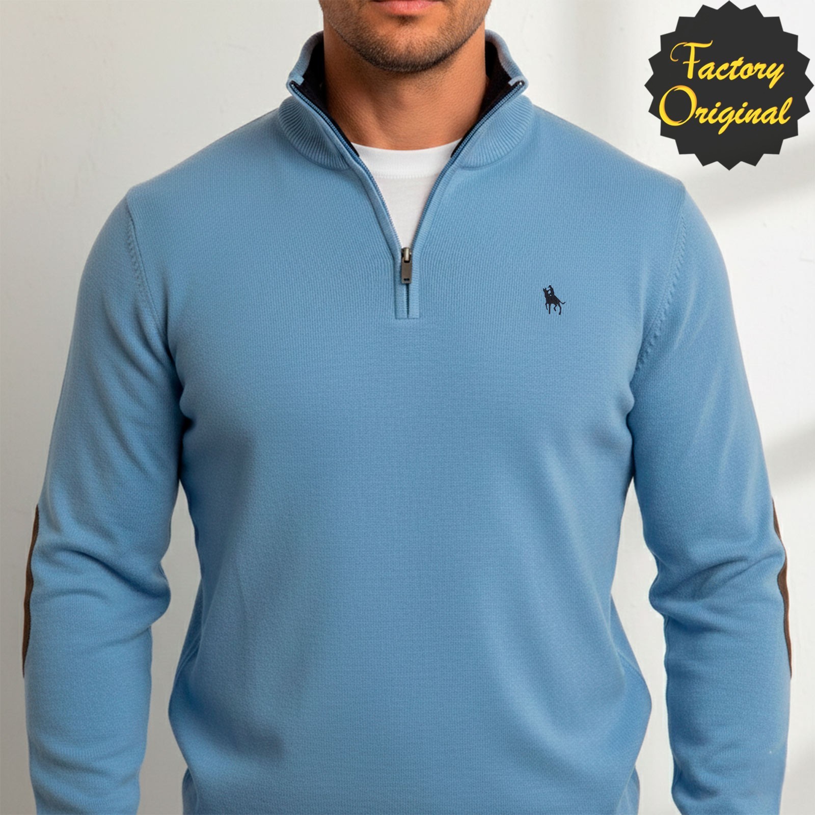 JERSEY MEDIA CREMALLERA CON CODERAS CELESTE SYC FACTORY ORIGINAL