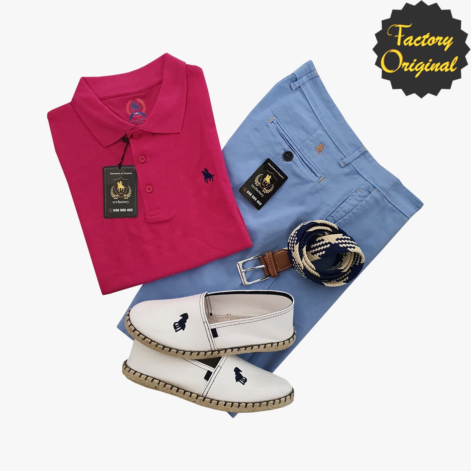 Pack polo basico fucsia Bermuda celeste esparteña blanca de SYC Factory Original