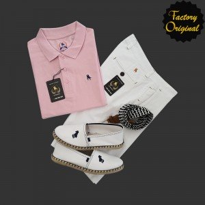 Pack polo basico rosa palo Bermuda blanca esparteña blanca de SYC Factory Original