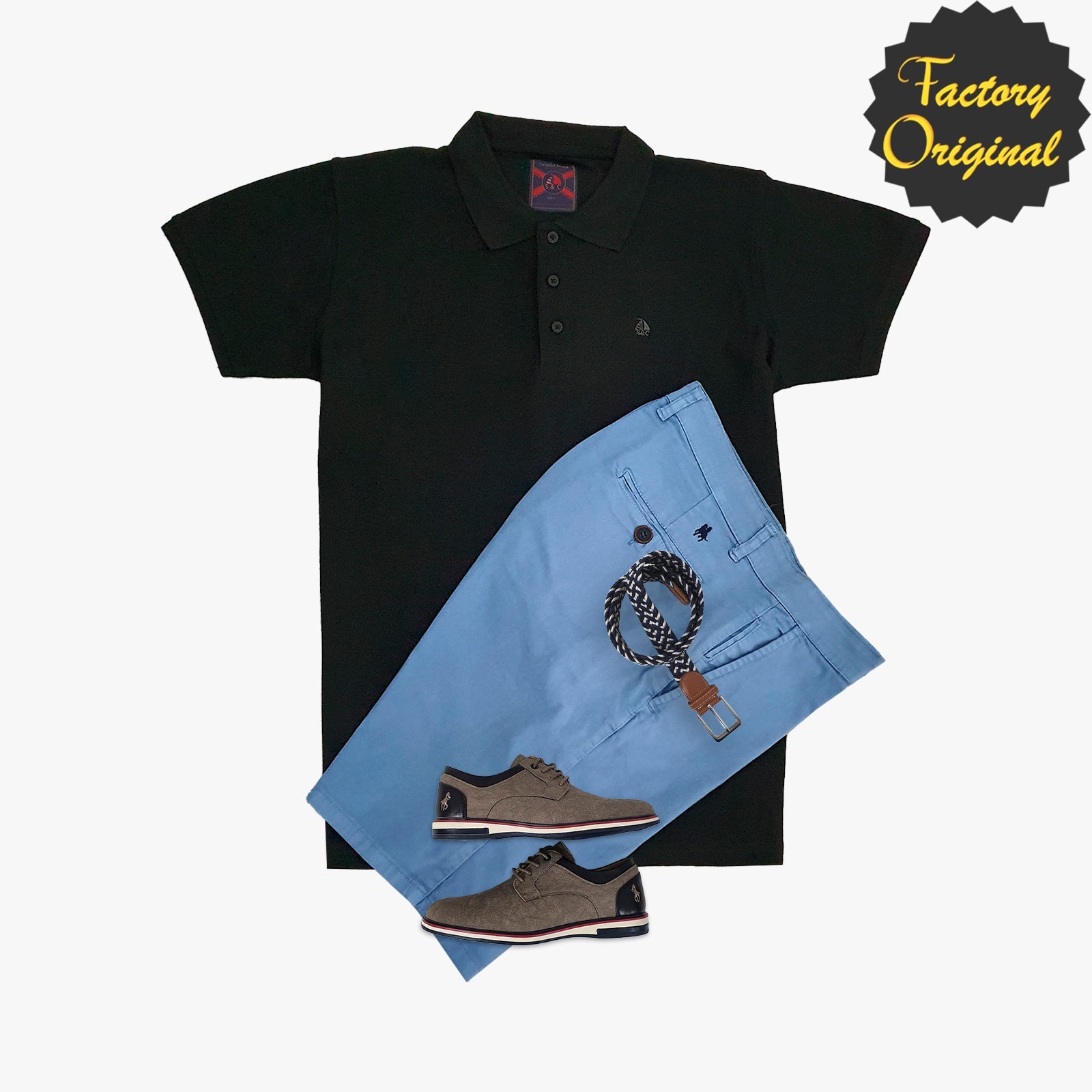 Pack Polo nuevo basico negro Bermuda celeste mocasin gris de SYC Factory Original