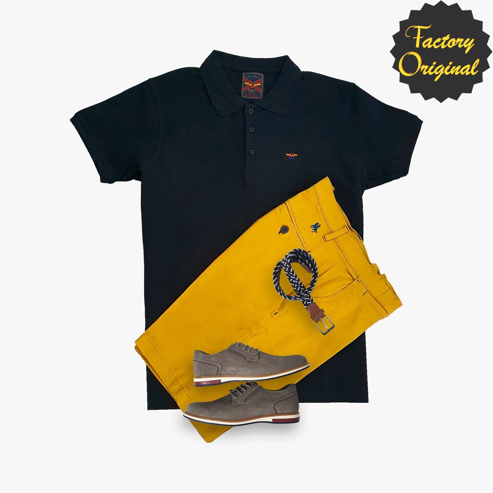Pack Polo basico patriota marino Bermuda mostaza zapato gris de SYC Factory Original