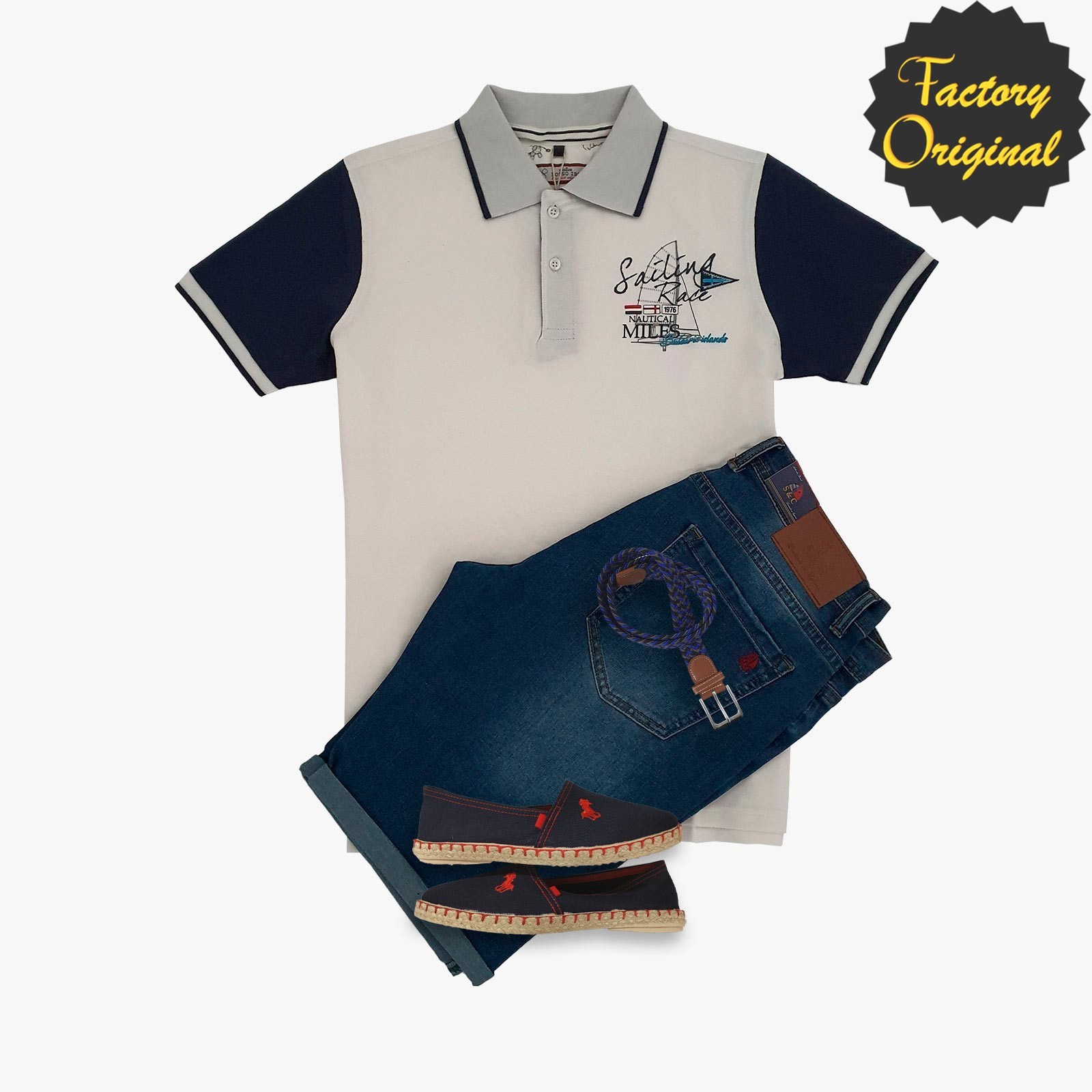 Pack polo fantasía Rosso sailing race blanco Bermuda Barco vaquero medio alpargata marino de SYC Factory Original