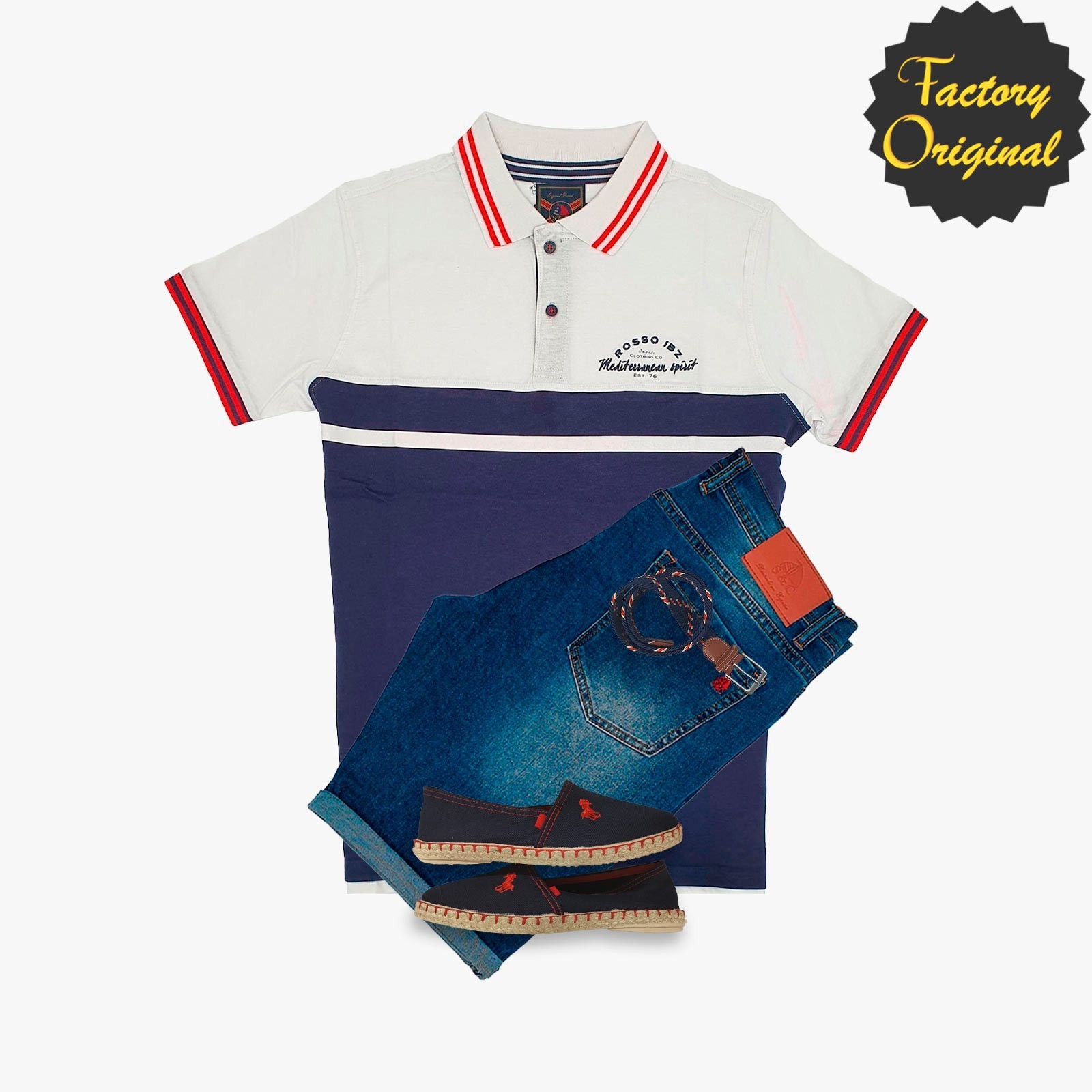 Pack polo fantasía Rosso mediterráneo Bermuda Barco vaquero medio alpargata marino de SYC Factory Original