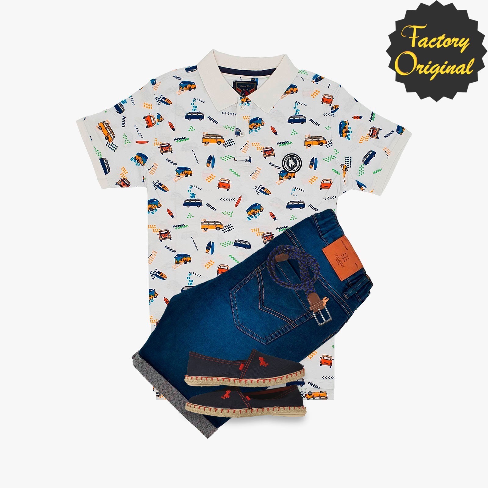Pack polo fantasía automóvil blanco Bermuda vaquera GOMA OSCURO alpargata marino de SYC Factory Original