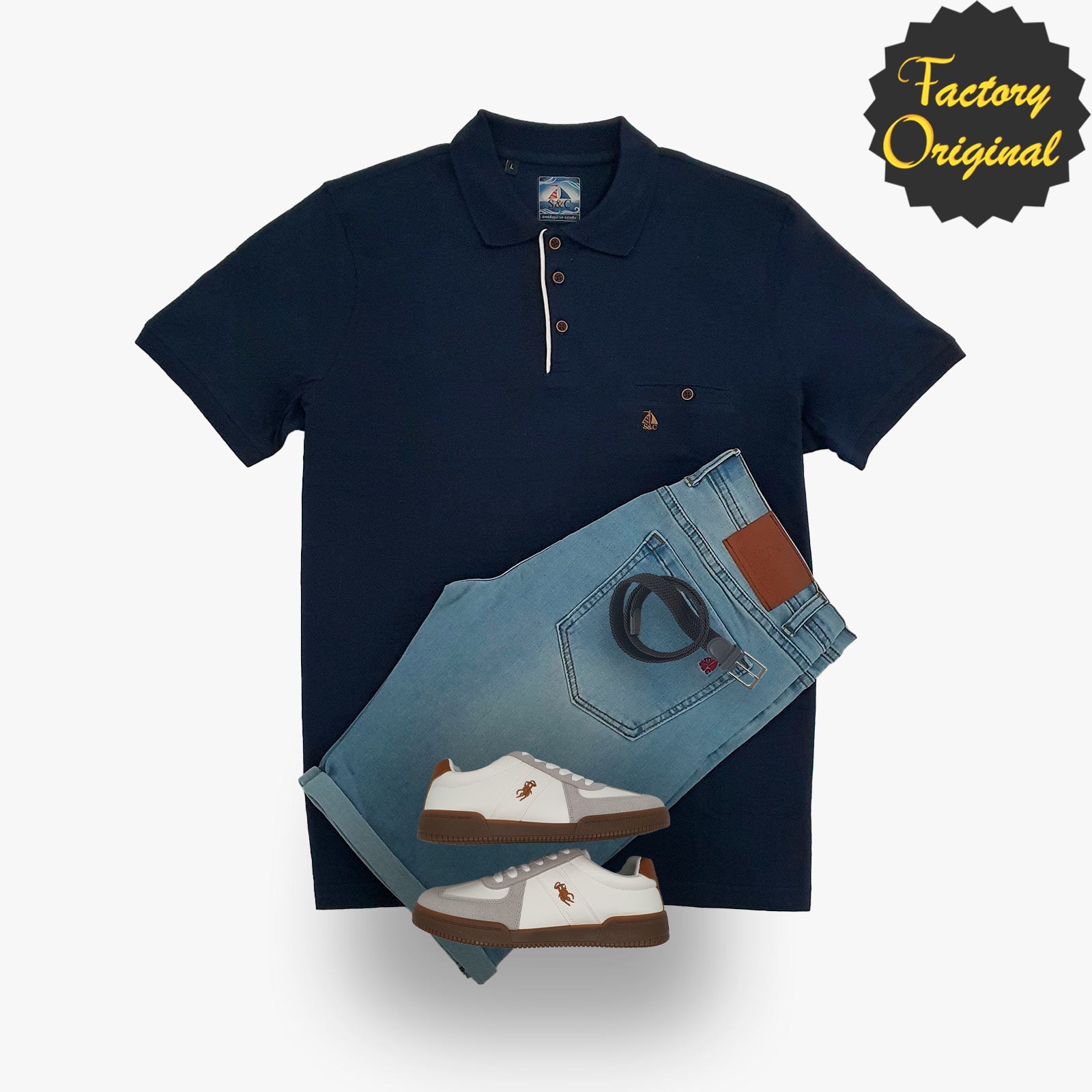 Pack polo fantasía minimal marino Bermuda Barco vaquero claro Deportivo Basic brown horse de SYC Factory Original