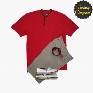 Polo fantasia maofit rojo Bermuda beis tostado alpargata blanca de SYC Factory Original