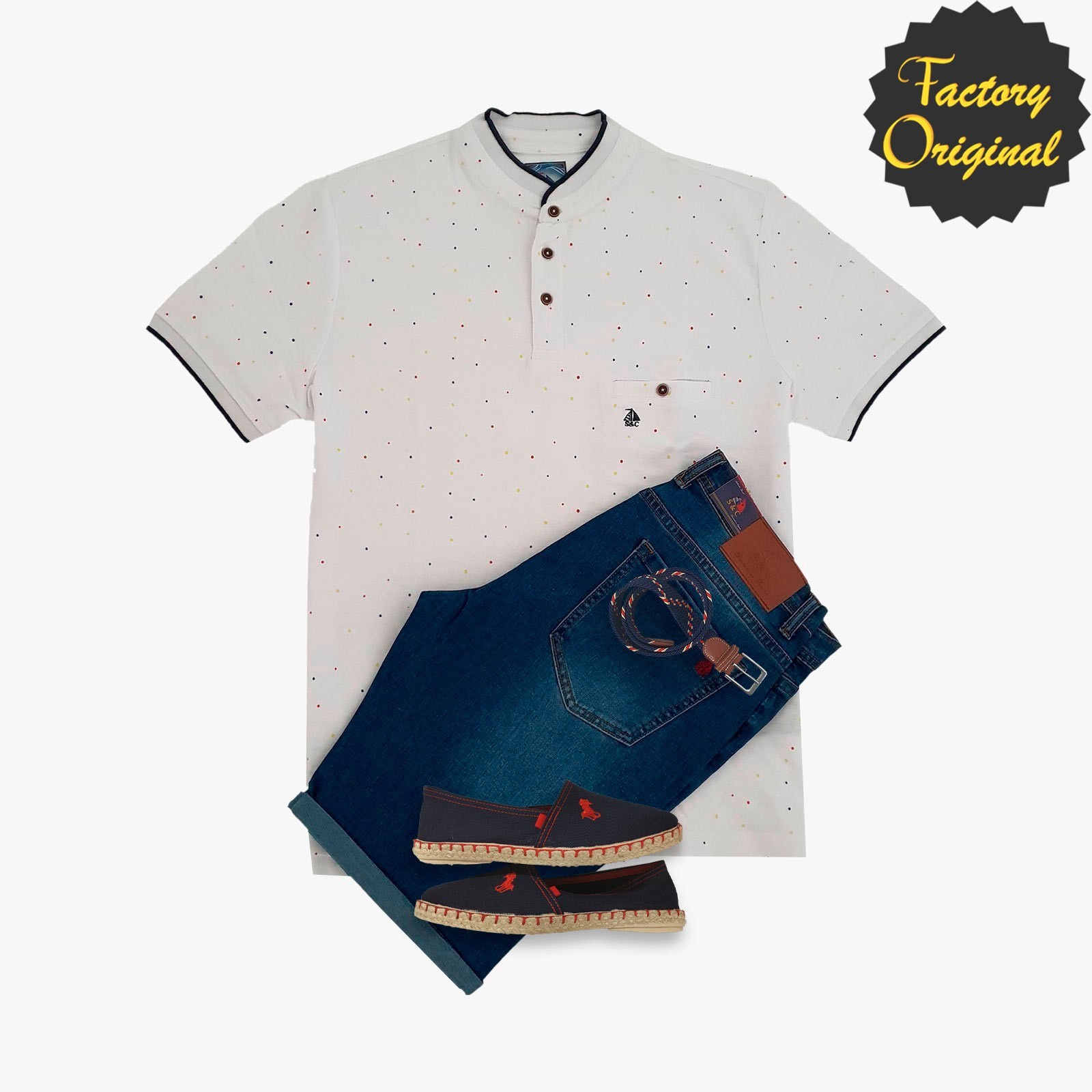 Polo fantasia confeti blanco Bermuda barco vaquero medio alpargata marino de SYC Factory Original