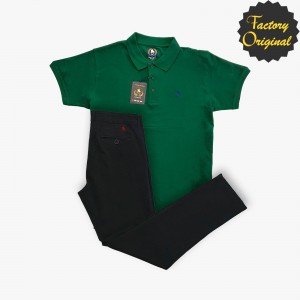 Conjunto de chino súper elástico negro y Polo manga corta verde de SYC Factory Original